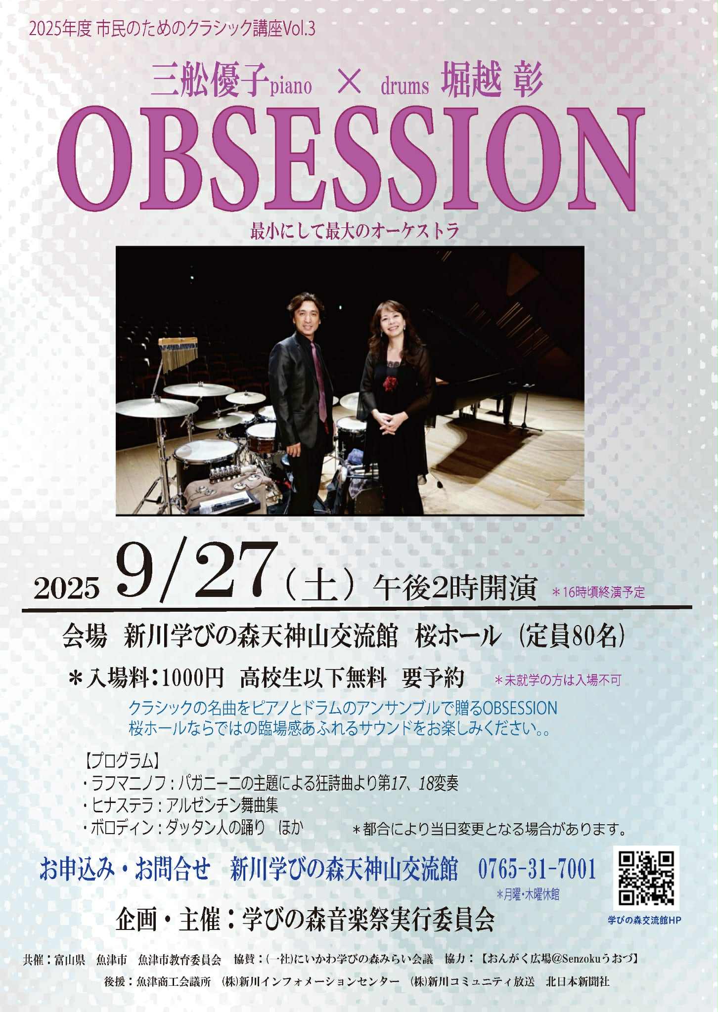 OBSESSION at 摂津峡Saal 第1部 こどものためのピアノとドラム体験ワークショップ OBSESSION for KIDS 第2部 OBSESSIONトーク&ライヴ |