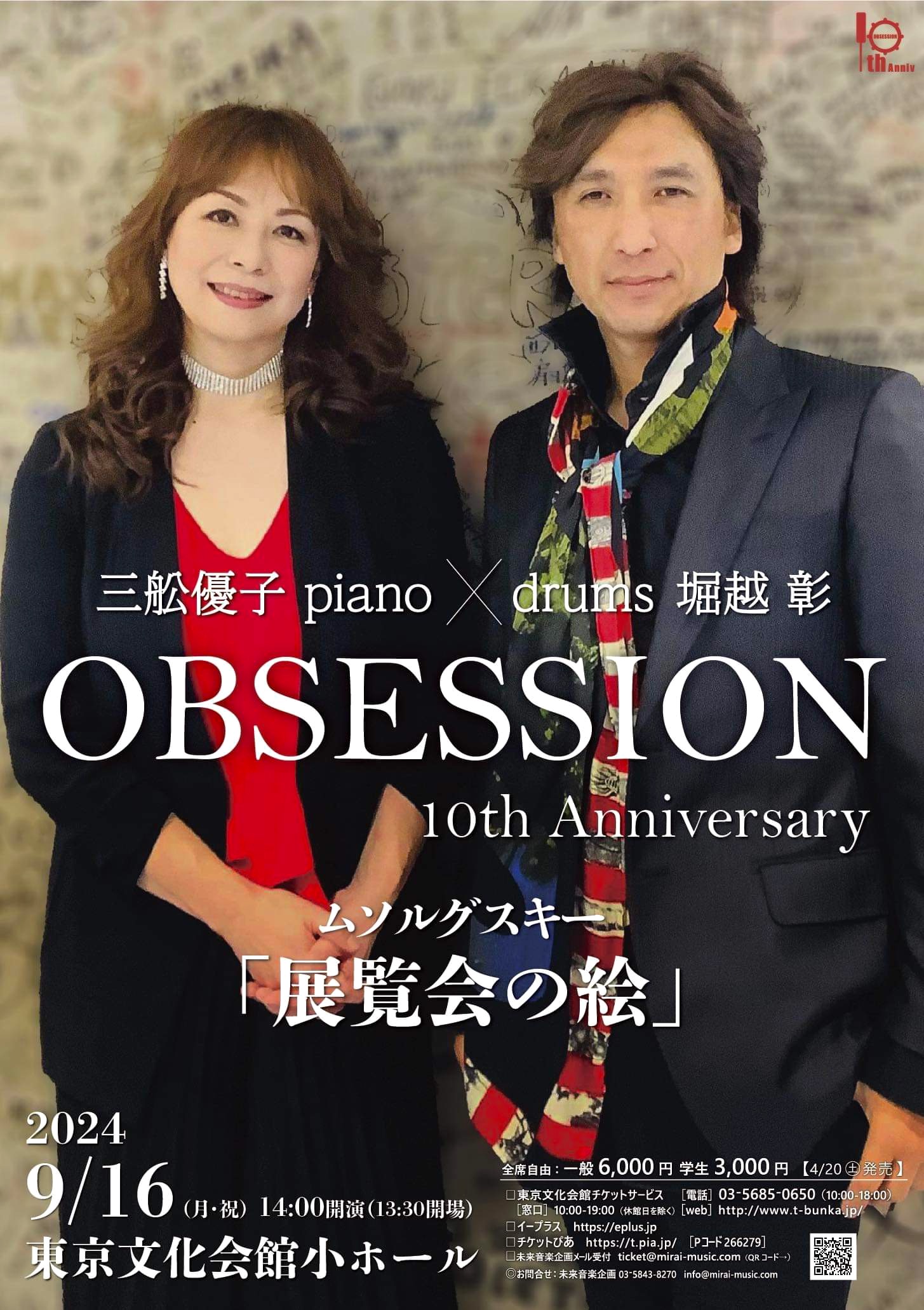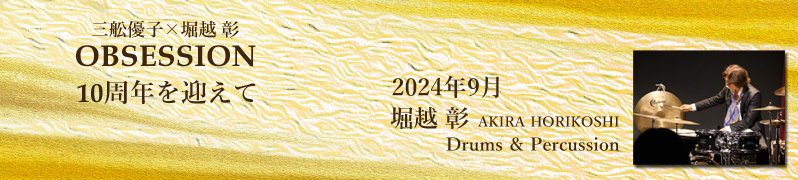 24歳の時に山下洋輔さんに出会い10年間レギュラーユニットに参加させていただきました。その後、深町 純さんと出会い亡くなるまでの10年間を「The WILL」や「SOLO-ist」や、その他様々な場面でご一緒しました。そしてその後に出会った三舩さんと10年。素晴らしいピアニストが現れ、育ててくれ、ピアノの音が僕の血肉になっているような気がします。9月16日東京文化会館「OBSESSION 10th Anniversary」は僕にとって、久しぶりに大きなチャレンジです。心を整えて、その日を迎えたいと思います。